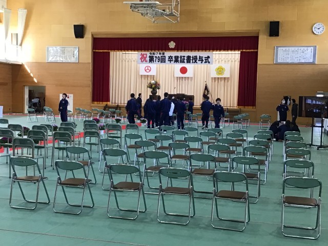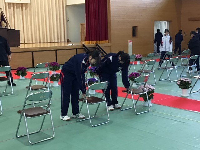 午後からは卒業式に向けた会場作成や教室整備、校舎内の清掃を行いました。