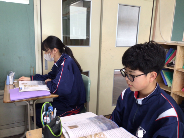 1年生は小学校の時に学習した「ごんぎつね」を学習しています。ずっと小学生の教科書に掲載されている名作です。その名作が英語訳されるとどんな表現になるのでしょうか。これから読み進めていくのが、楽しみですね。