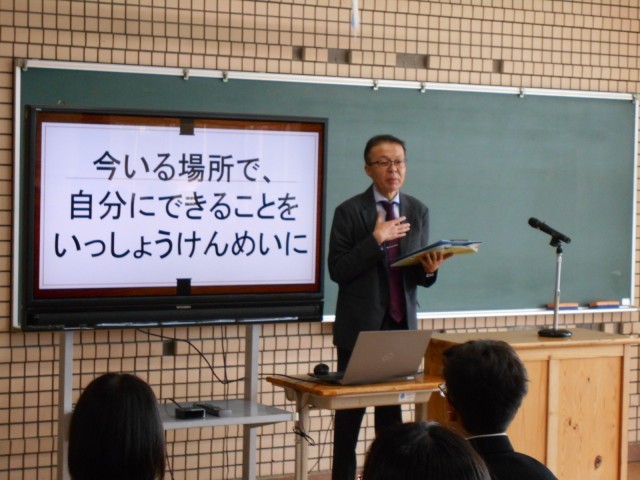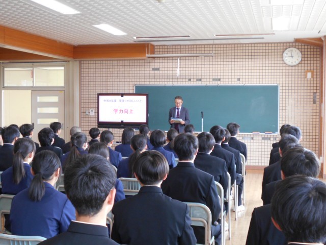 着任式の後、始業式を行いました。校長式辞では「学力を向上」させようということと「折り合いをつける」ということが述べられました。そして1学期には「今いる場所で 自分にできることを いっしょうけんめいに」やってがんばってほしいという話がありました。