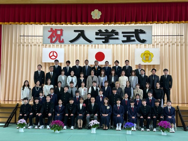 入学式後の集合写真です。新入生のみなさん、明日から喜久田中学校で頑張りましょう。