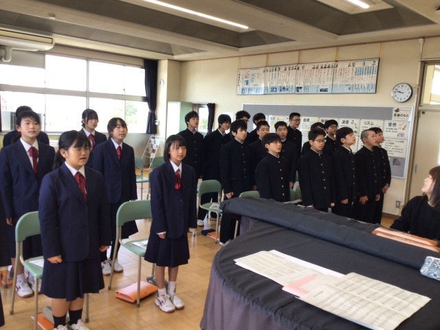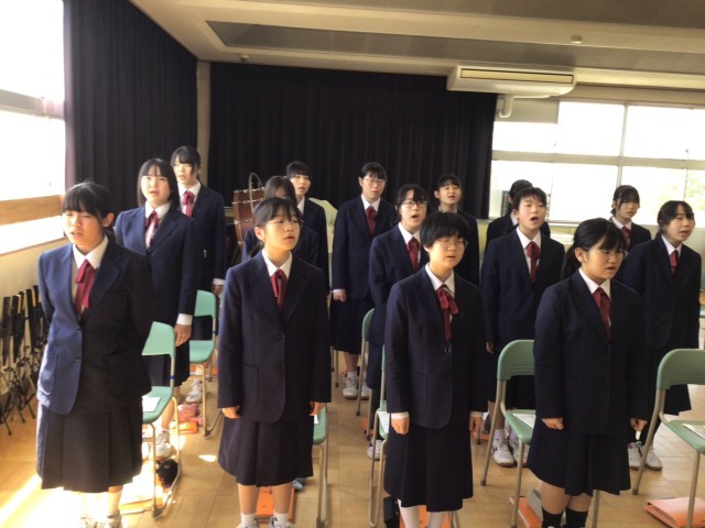 2年生の音楽では歌をたくさん歌いました。まずは校歌。音楽室が揺れるほどの大きな声で一生懸命に歌を歌いました。自分の学校の歌を大きな声で歌う2年生はたいへん立派です。