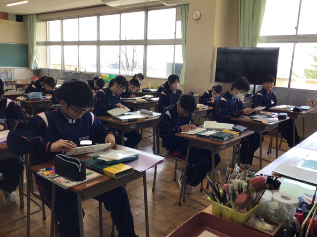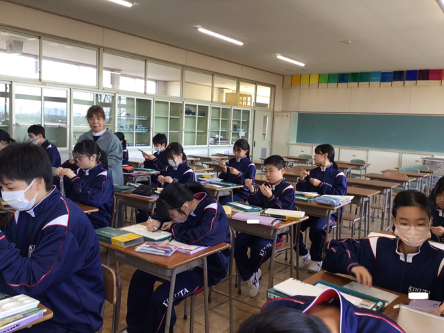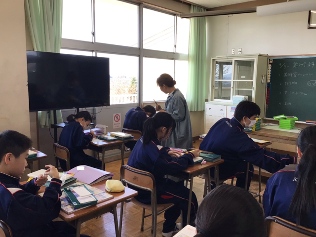 1の2はこれから美術の授業を楽しむためにオリエンテーションを行いました。筆やパレットの使い方などの説明を受けました。小学校では図工という教科であったものが中学校では美術に変わります。絵を描いたり、作品の作成などをし、楽しく学んでいく予定です。頑張りましょう。