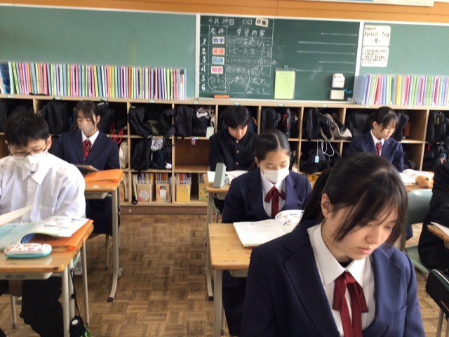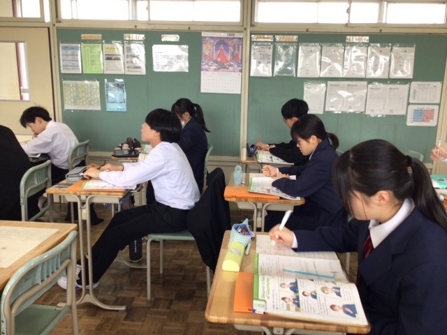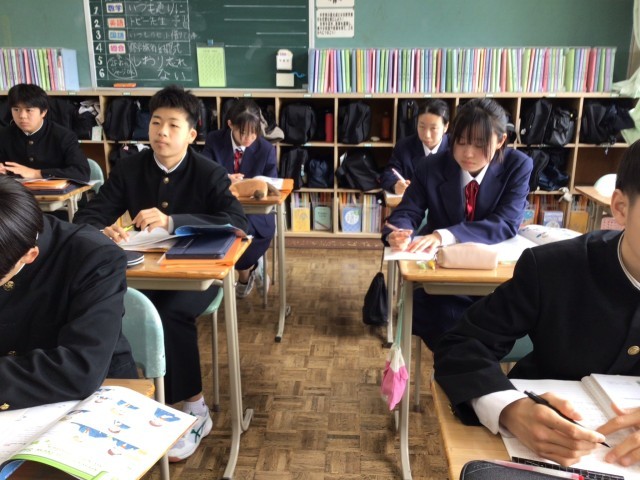 本日はAETの来校日です。3年生の英語の授業ではAETともに英会話を行いました。ネイティブの発音をまねしながら、しっかりと学習していました。明日からの修学旅行でも外国の方と話す機会があるかもしれません。楽しみです。