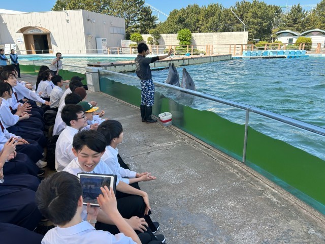 イルカのショーを見学しました。水しぶきがすごかったです。
