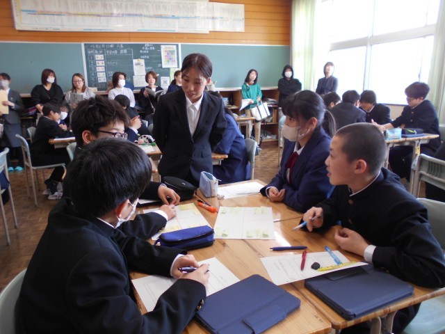 今日は授業参観です。3年生は、修学旅行の見学場所について発表しました。かけがえのない経験ができましたね。2年生は、学級目標について話し合いました。お互いが気持ちよく過ごせるよう知恵を出し合っていました。