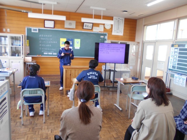 1年生は、教科や学級活動の授業を参観していただきました。手を挙げて発言する姿が見られました。あおぞら学級では、興味関心に応じたテーマでプレゼンを行いました。絵や歌など、マルチメディアなプレゼンで見る側が楽しくなりました。