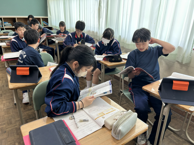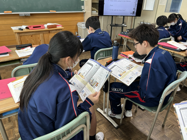 2年生は英語でペア音読を行いました。お互いに音読して良かった点、改善すべき点を出し合いました。ペアで仲良く楽しく取り組むことができました。