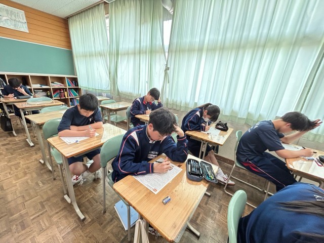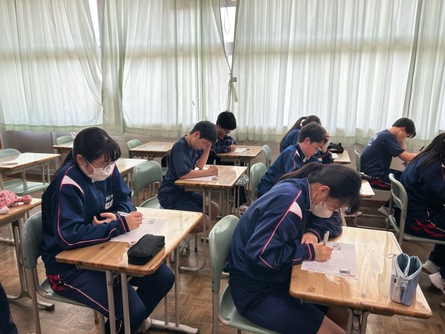 2年生では国語の単元テストを実施しました。学習の成果を試す機会です。生徒たちは真剣にテストにのぞんでいました。