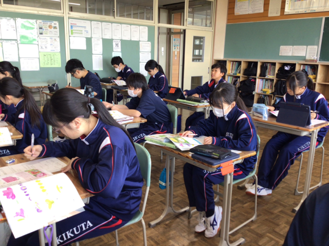 1年2組は理科の授業で植物の受粉について学習しました。種子植物のおしべで作られた花粉がめしべの柱頭に付着する現象を受粉と言います。受粉すると胚珠は種子に子房は果実になります。今日は覚えることがたくさんある授業でした。