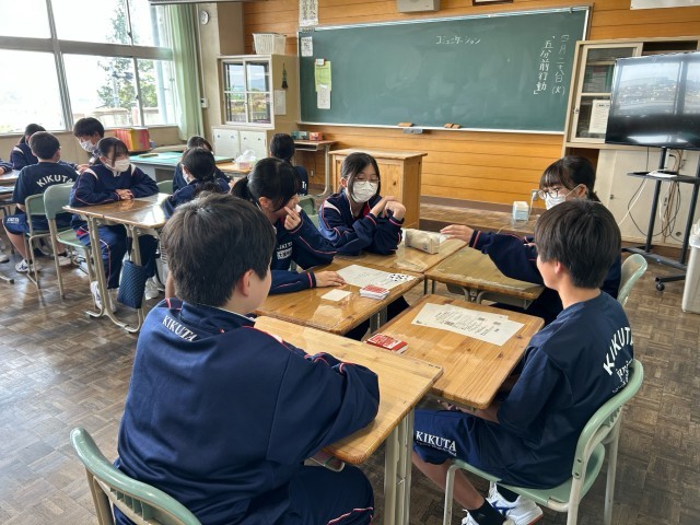 1年1組ではカタルタを行い、聞く力と話す力を伸ばしました。たいへんよい雰囲気でグループになり、協力して活動することができました。