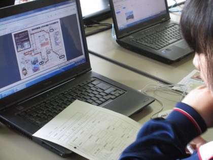 インターネットで何を調べているのかな?焼き物のパンフレットを見ている班も。体験活動いいですね。