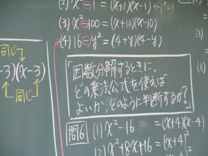 因数分解を少しでも楽に解くには、公式が便利。どの公式を使うか、どこに注目して判断すればいいかな?