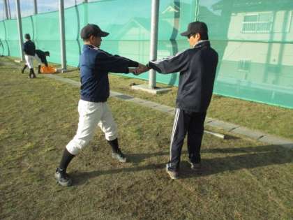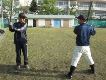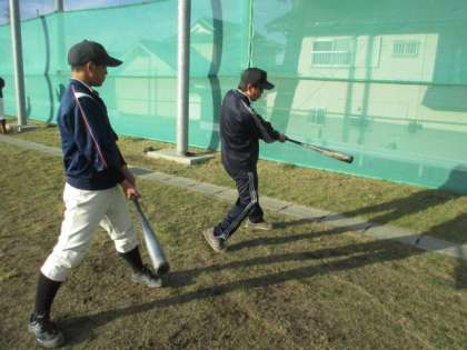 連休中に行われた市大会、3位入賞の野球部。バッティングフォームの確認で飛距離アップをめざしています!