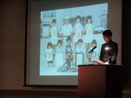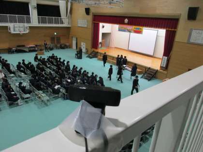 調理室で作業しているお家の方のために、ライブ中継で体育館の様子を中継しています。