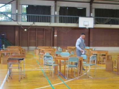 昼食会場を屋外にセッティングしていたのですが、突然の雨。保護者の皆さんが急きょ机を屋内に移動して下さいました。生徒の皆さん、気がつかなかったでしょ?