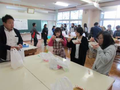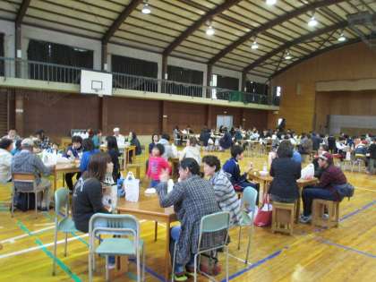 待ちに待った豚汁タイム!みんないい顔!