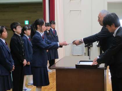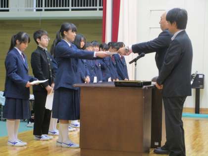 学級新聞コンクール、合唱祭、書道など、入賞者の表彰です。