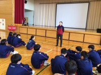 イザベル先生とスピーキングテストです。学級では単語練習。大きな声ではっきり!