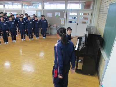 在校生が式歌の自主練をしています。素晴らしいですね!