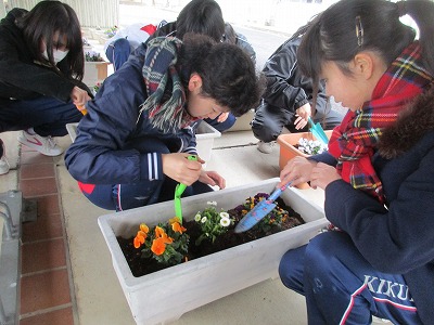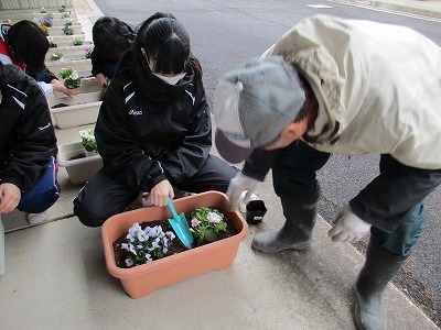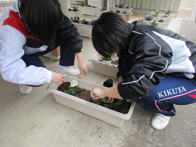 愛校作業と平行して、プランターの整備もしました。