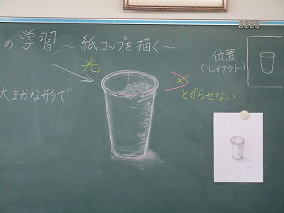 紙コップを描こう!同じ紙コップを描いても描く人の個性が出ますね!!
