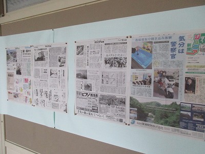 図書室の掲示版に新聞コーナーがあります。社会のニュースだけじゃなく入試問題に挑戦など中学生の役に立つ情報も満載です。ぜひご覧下さい。
