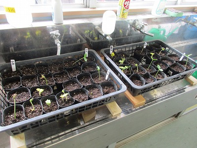 蒔いた種が発芽しました。もう少し大きくなったら畑に植えましょう。
