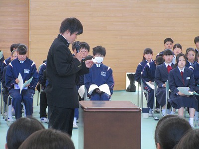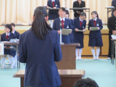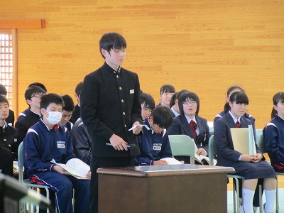学級代表が発表する意見を全校生が耳を傾け話し合いをしました。どの意見も大切に丁寧に審議されました。