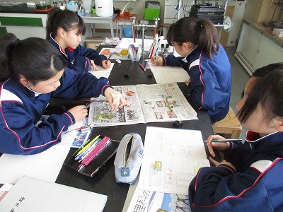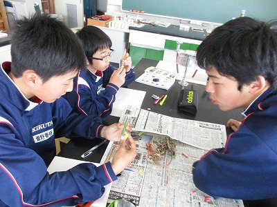赤インクを吸わせた植物、切ってみるとどうなっているかな?
