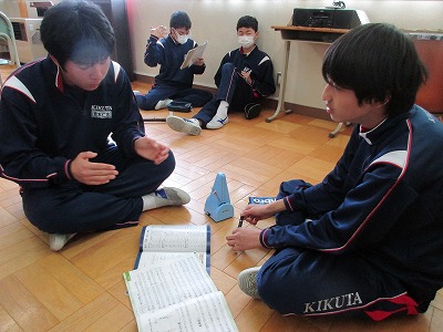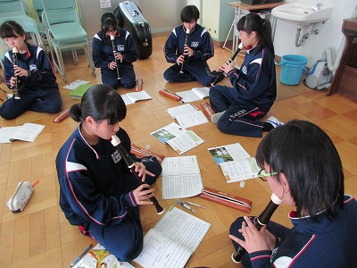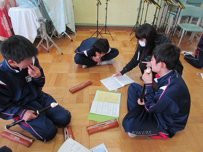 ふるさとの曲を発表します。強弱、速さ、どう表現するかな?班で相談中〜