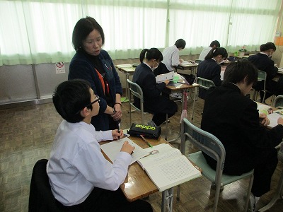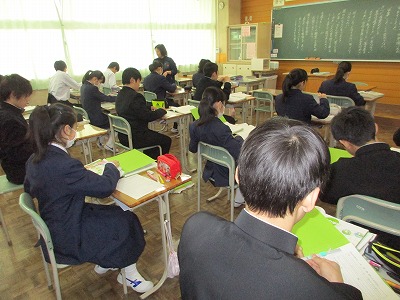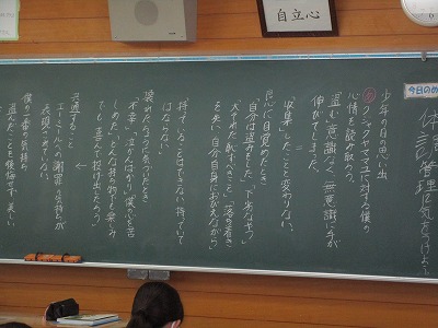 黒板にびっしりと書かれた文字。小学校ではこんなに書かなかったかな?でも、もう慣れました。1年生もすっかり中学生。もうすぐ先輩ですね!