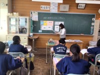 2年生の体育はミニ運動会の種目を確認しました。写真は2人の背中にボールを運ぶ競争です。2人で声を合わせ、協力してボールを運ぶことができました。