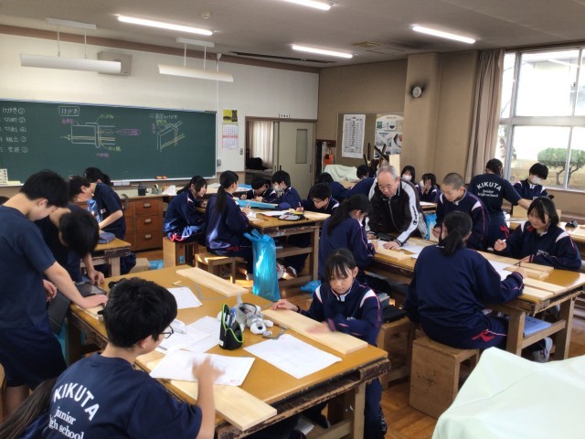 1年生の技術では、木製ラックの製作を行っています。製図したものを木の板に書き写す...