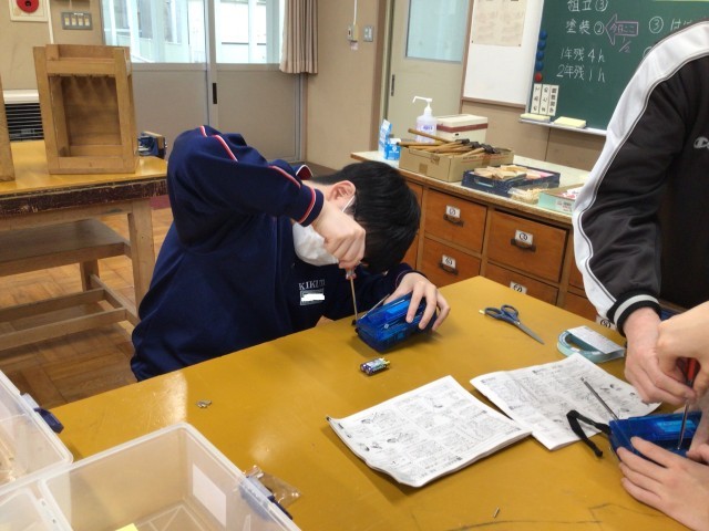 あおぞら学級では、ラジオの製作を行っています。ドライバーでネジ締めを行うなど組み...