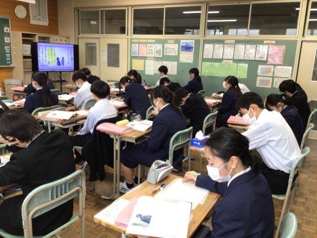 6校時目に卒業式練習を行いました。インフルエンザ蔓延防止のため、各教室でZoom...