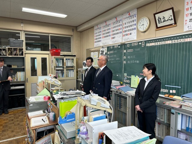 今日は離任式です。本校から3名の先生方が転出されます。職員室にて離任のあいさつを...