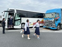 いよいよ修学旅行です。喜久田スポーツ広場駐車場で修学旅行出発式を行いました。生徒...