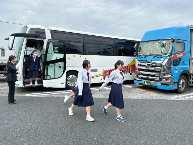上河内サービスエリアで休憩しました。全員、バスに乗ったので、出発します。みんな元...
