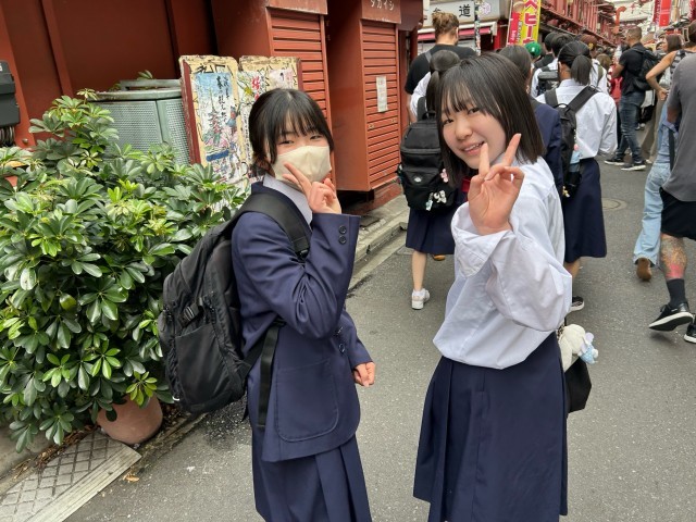 浅草寺をバックに集合写真を撮りました。みんないい顔しています。
