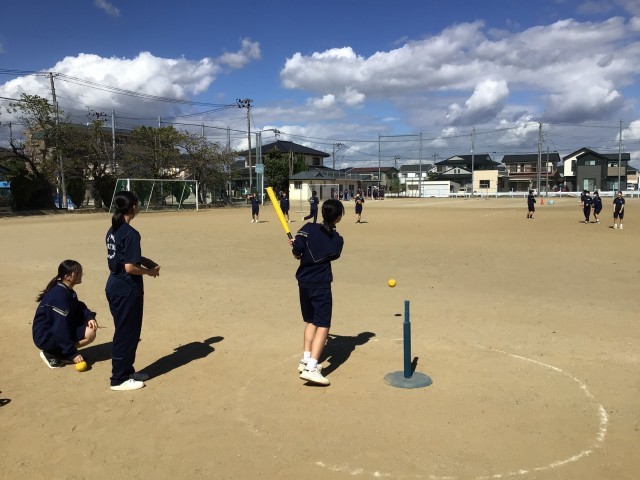 バッティングフォームもみんなでアドバイスし合って、直していきます。試すことに失敗はない。