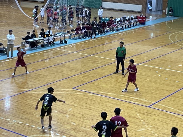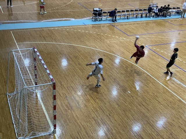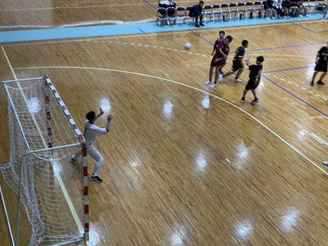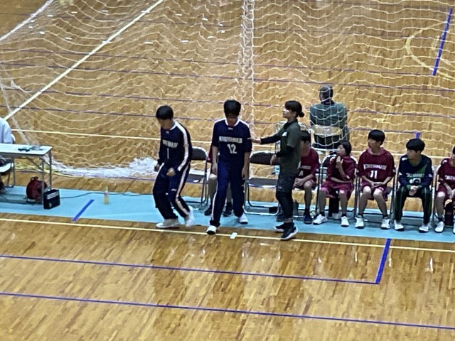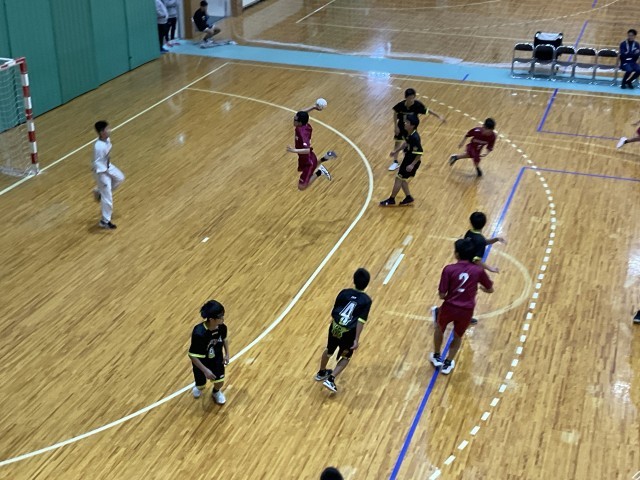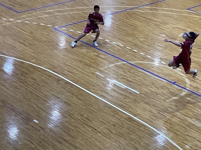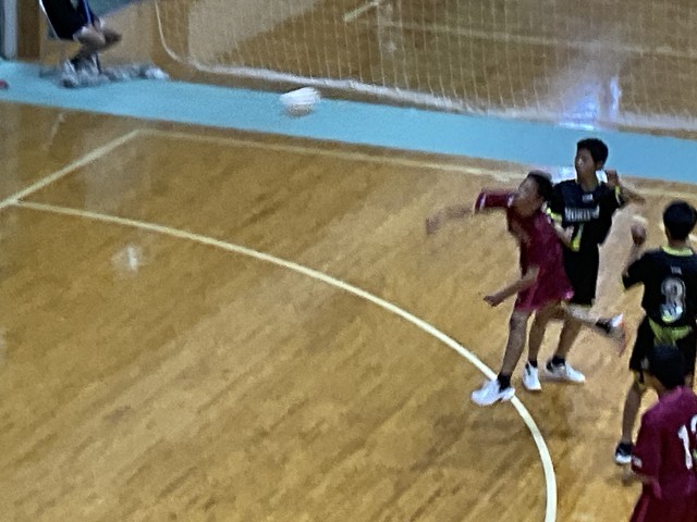 石川町クリスタルパーク体育館にて県中地区ハンドボール新人大会です。守山中と対戦中!リードしています!