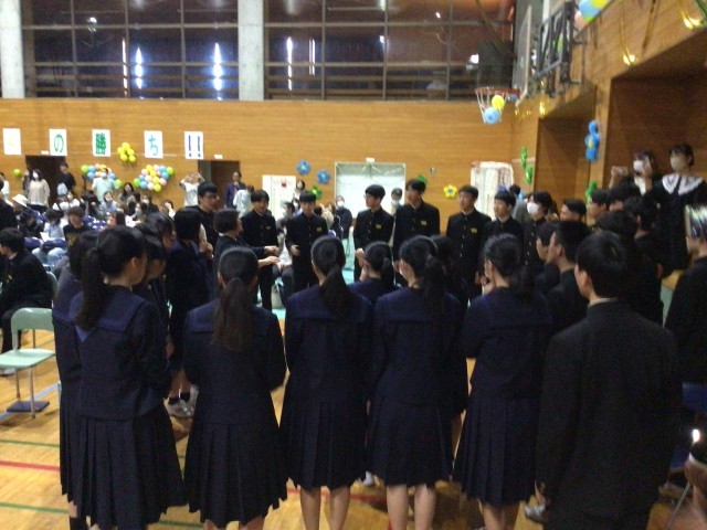 これから3年生の発表です。休憩時間も入念に仕上げの練習。各学級の意気込みが伝わってきますね!
