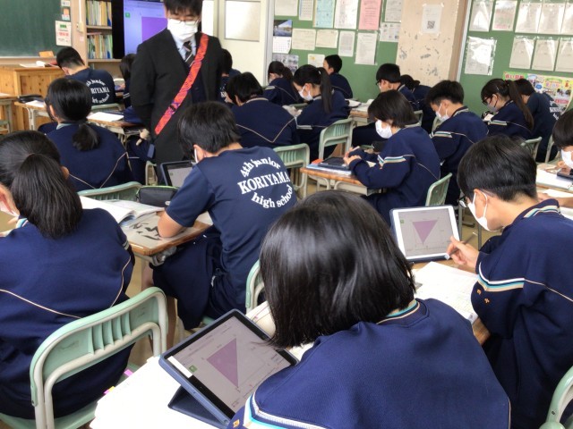 タブレット上で図形を操作して動点と面積の関係を求めよう!