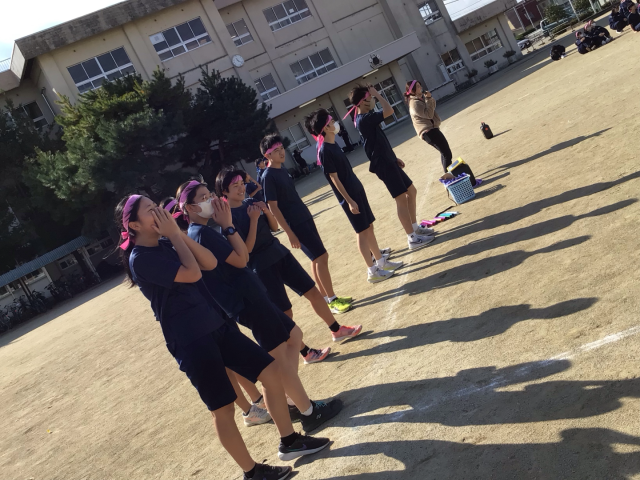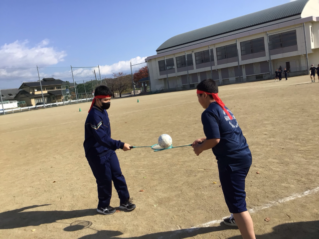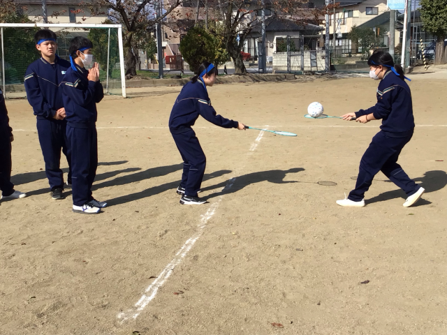 バドミントンラケットにボールをのせて走りました。上手にできたかな。