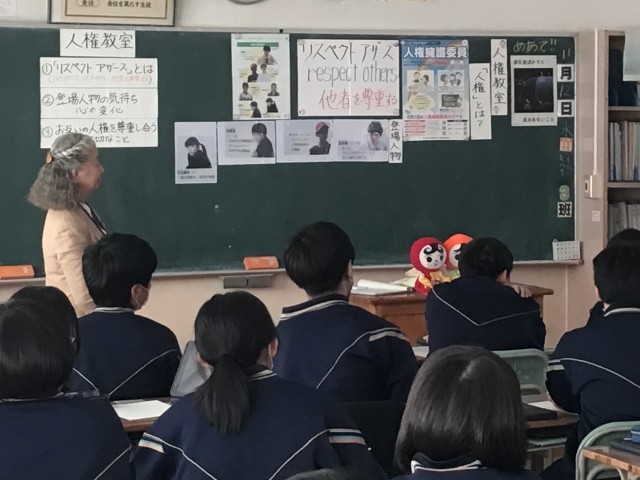 人権委員の先生をお招きし人権教室です。相手を尊重することが人権の基本ですね。