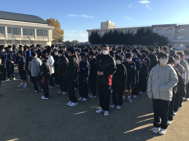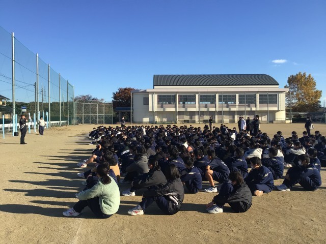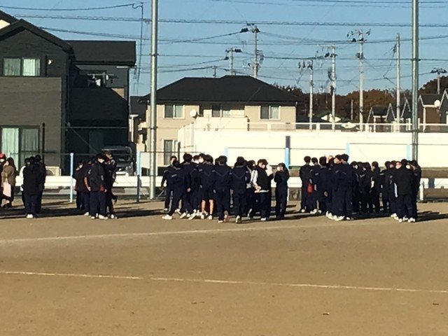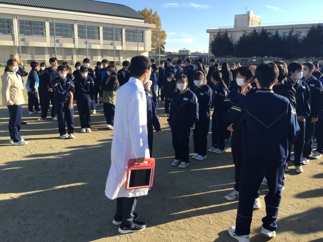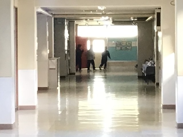 火災を想定して訓練です。防火扉が閉まった状態です。落ち着いて行動できるかな?