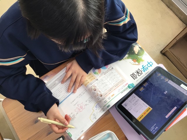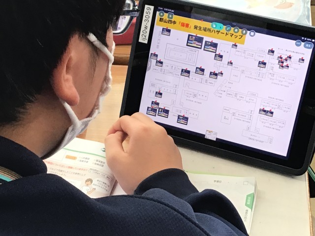 研究授業から。見つけた校内の危険箇所を共有マップに記入!