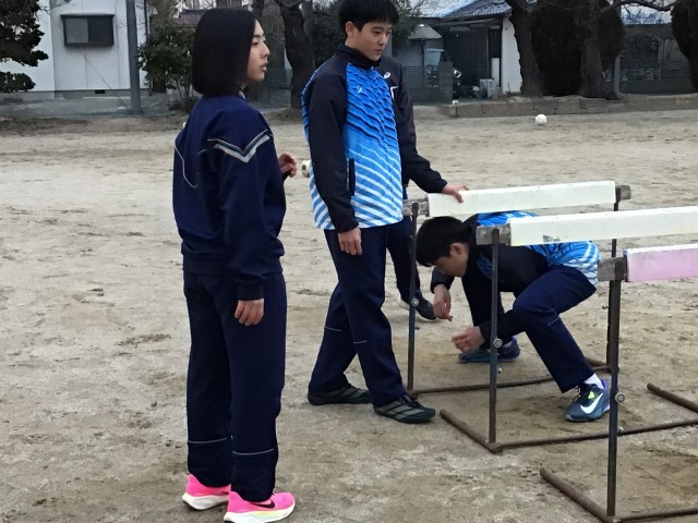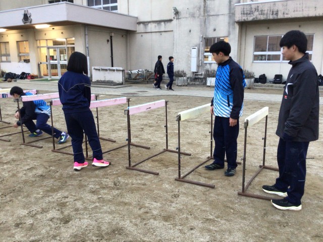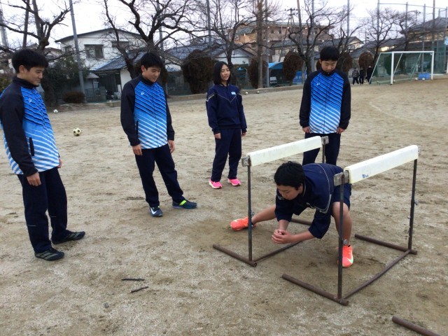 ハードルの下をくぐるトレーニングです。