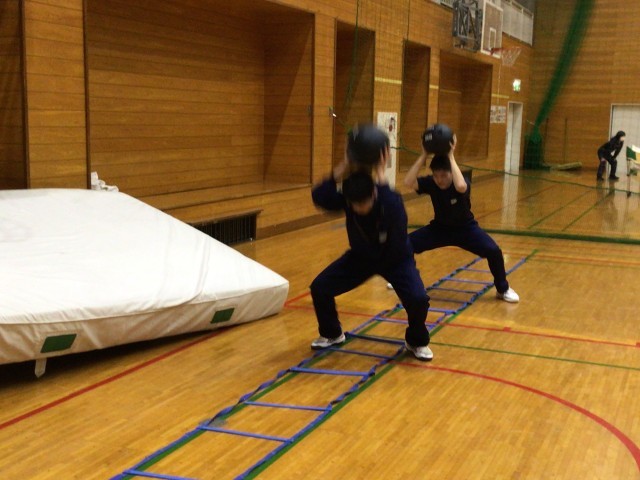 キーパー別メニューで特訓中。ゴール前の崩し、移動のタイミングを確認!