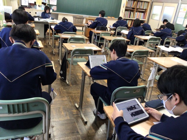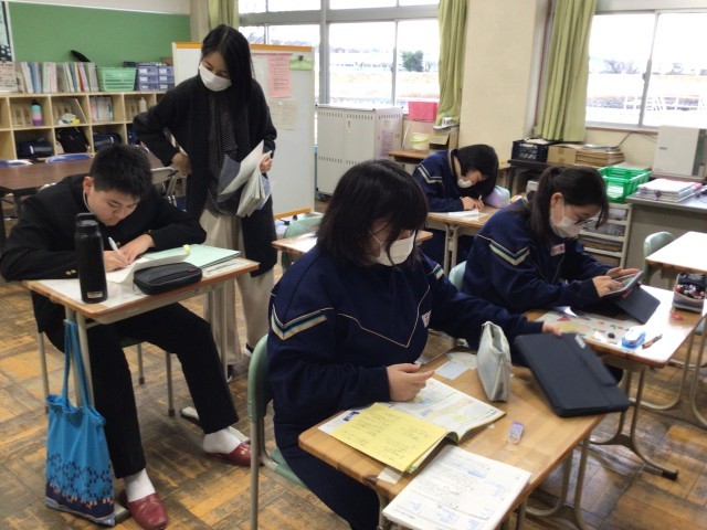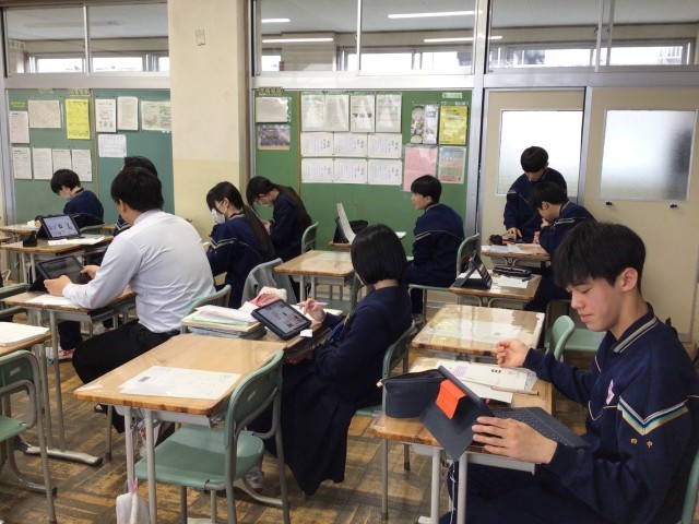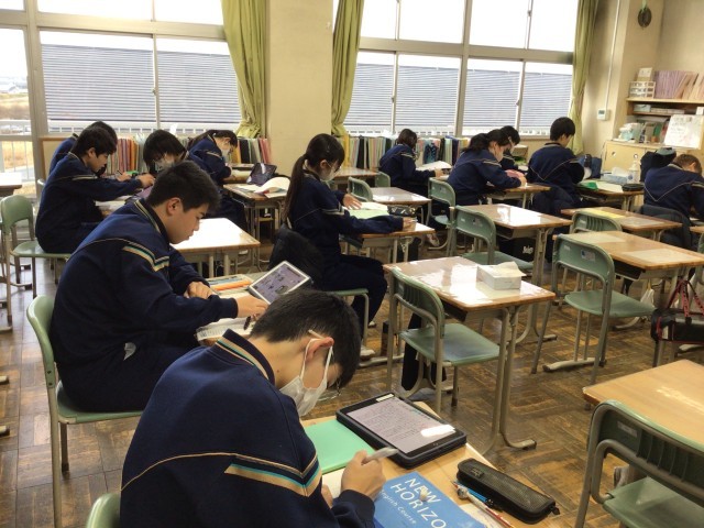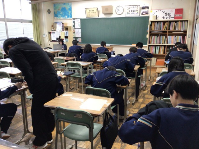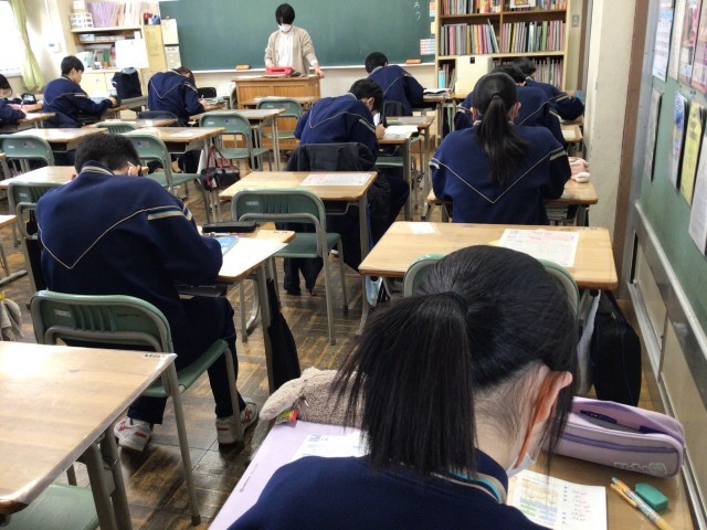入試で半分くらいの人数でしょうか。卒業に向けて文集等準備です。